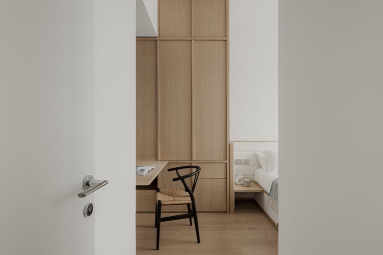 With functionality as our starting point , we employed a minimalist design approach , harmoniously blending natural wood with nature to create an atmosphere of freedom , interaction , life , and attitude.