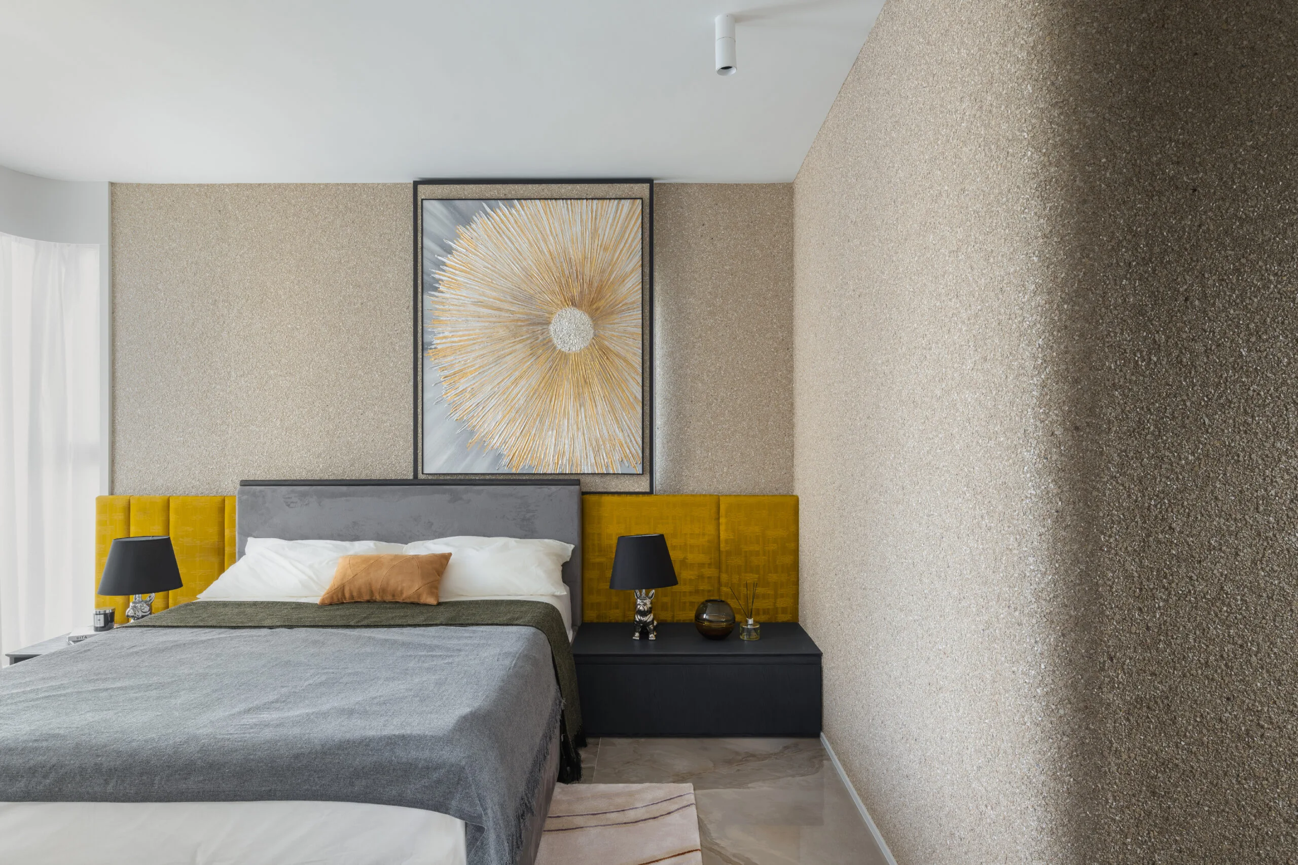 It brings out visual collisions in simplicity and elegance, creating a living space with rich layers and textures.