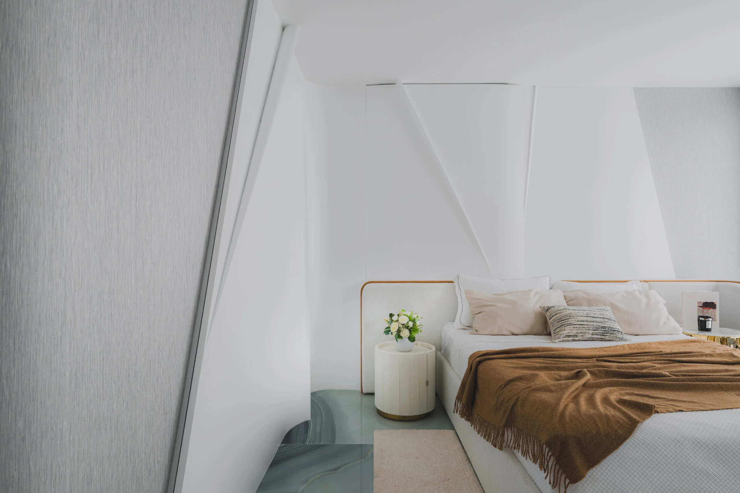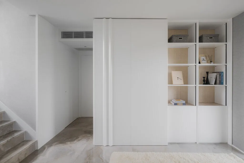 The whole house adopts simple white as the overall main tone, with a large amount of stone and special fabrics, and cleverly injected with wood tones as elements.